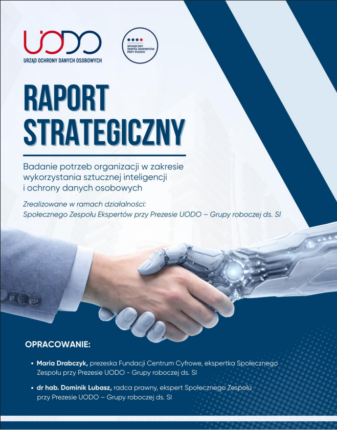 28 stycznia 2026r.  odbył się 𝗞𝗼𝗻𝗴𝗿𝗲𝘀 𝗢𝗰𝗵𝗿𝗼𝗻𝘆 𝗗𝗮𝗻𝘆𝗰𝗵 𝗶 𝗡𝗼𝘄𝘆𝗰𝗵 𝗧𝗲𝗰𝗵𝗻𝗼𝗹𝗼𝗴𝗶𝗶, podczas którego opublikowano „𝗥𝗮𝗽𝗼𝗿𝘁 𝗦𝘁𝗿𝗮𝘁𝗲𝗴𝗶𝗰𝘇𝗻𝘆 – 𝗕𝗮𝗱𝗮𝗻𝗶𝗲 𝗽𝗼𝘁𝗿𝘇𝗲𝗯 𝗼𝗿𝗴𝗮𝗻𝗶𝘇𝗮𝗰𝗷𝗶 𝘄 𝘇𝗮𝗸𝗿𝗲𝘀𝗶𝗲 𝘄𝘆𝗸𝗼𝗿𝘇𝘆𝘀𝘁𝗮𝗻𝗶𝗮 𝘀𝘇𝘁𝘂𝗰𝘇𝗻𝗲𝗷 𝗶𝗻𝘁𝗲𝗹𝗶𝗴𝗲𝗻𝗰𝗷𝗶 𝗶 𝗼𝗰𝗵𝗿𝗼𝗻𝘆 𝗱𝗮𝗻𝘆𝗰𝗵 𝗼𝘀𝗼𝗯𝗼𝘄𝘆𝗰𝗵”, przygotowany na zlecenie Prezesa Urzędu Ochrony Danych Osobowych.